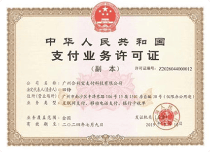 100%资金安全的承诺,100%收款到账,合利宝科技拥有中国人民银行颁发支付牌照